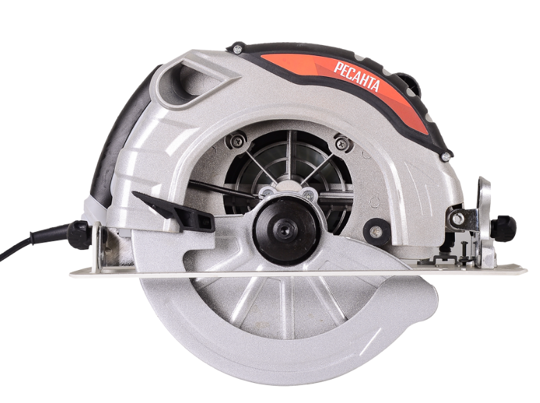 Модель Ресанта ДП-235/2200 оснащена электромотором мощностью 2200 Вт. Он передает вращательное движение до 4500 об/мин на вал, на котором закреплен пильный диск 235 мм. Посадочный диаметр диска составляет 30 мм. Для безопасной работы он заключен в два металлических кожуха. Нижний оснащен маятниковым механизмом, он обнажает режущие части пилы, когда инструмент касается заготовки. Верхний стационарный, он имеет патрубок для отведения пыли и стружки или присоединения шланга строительного пылесоса.