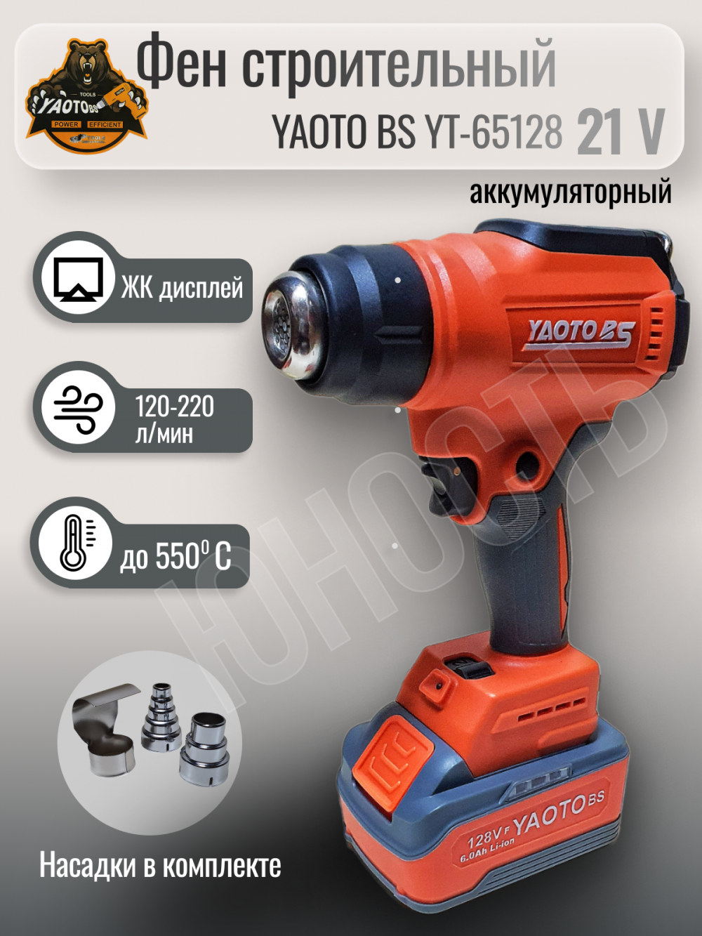 Фен строительный YAOTO 128V на аккумуляторе — незаменимый помощник для профессионалов и домашних мастеров. Мощный и компактный, он обеспечивает быстрый и эффективный нагрев, позволяя вам выполнять различные задачи, от сушки клея и краски до разморозки труб. Его удобная эргономичная ручка и легкий вес обеспечивают комфорт при длительной работе. Яркий оранжевый цвет делает его легко заметным на рабочем месте. Фен YAOTO 128V — надежный инструмент, который станет вашим верным помощником в любых строительных работах.