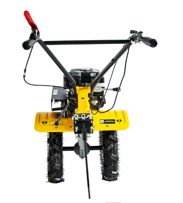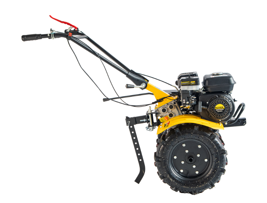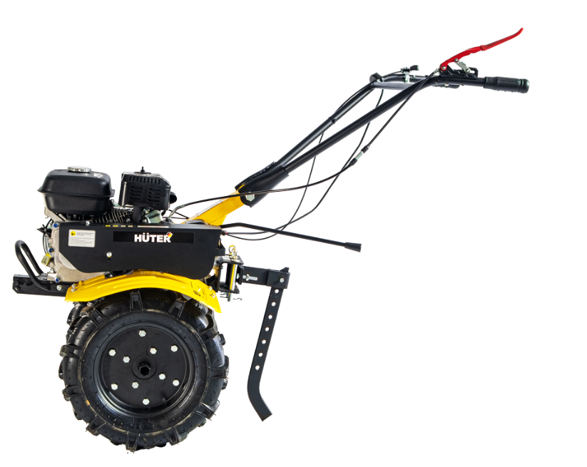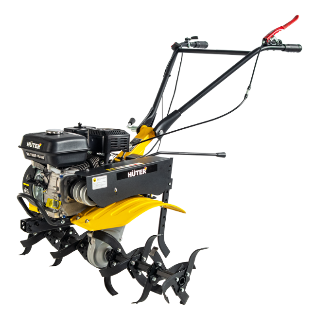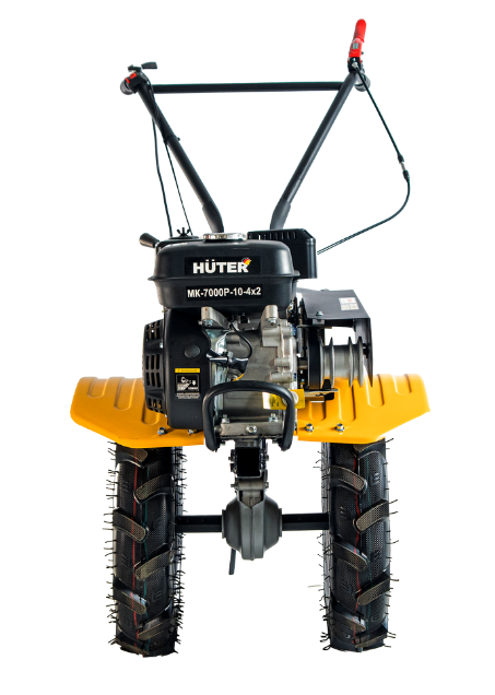 Сельскохозяйственная машина HUTER МК-7000P-10-4х2 является самоходной и не требует от оператора значительных усилий. Благодаря экономичному расходу топлива бензобака объемом 3,6 л хватает на 2,5 ч работы. Элементы управления расположены на рукоятках. Датчик уровня масла позволяет контролировать его расход. Колеса 4х10 с глубоким протектором обеспечивают устойчивость и проходимость. Широкие крылья защищают от попадания комьев земли и посторонних предметов.