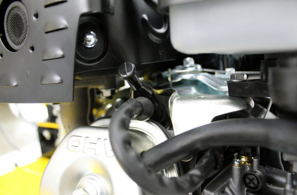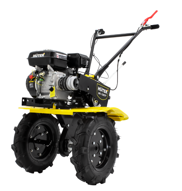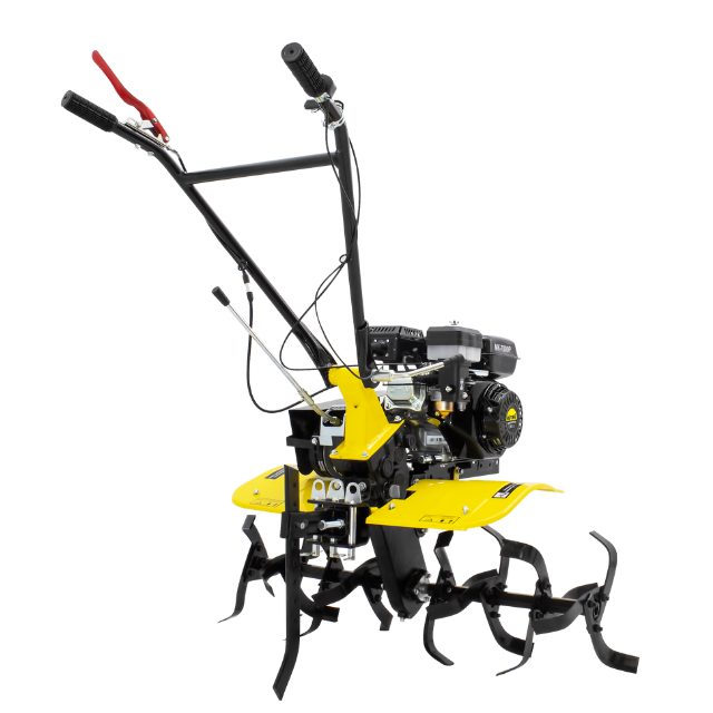 Сельскохозяйственная машина оснащается четырехтактным бензиновым двигателем 7,8 л.с. с датчиком уровня масла. Заправлять мотор можно бензином с октановым числом не ниже 92. Топливный бак объемом 3,6 л. рассчитан на продолжительную непрерывную работу без дозаправки.
