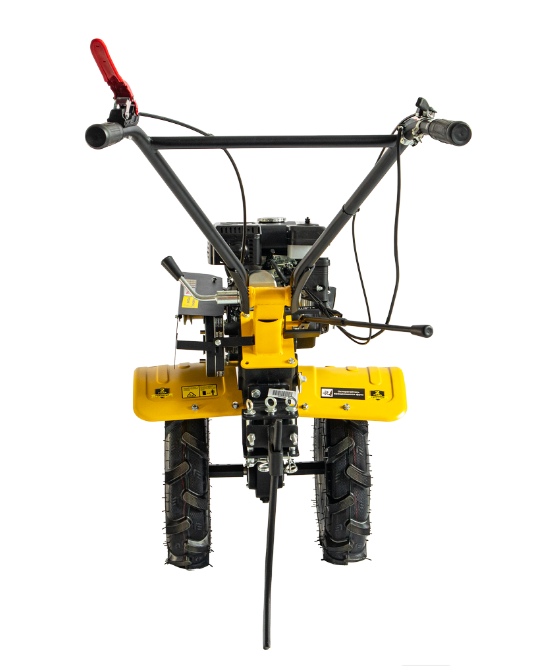 - Рукоятка регулируется по высоте, поэтому мотоблок удобно использовать людям различного роста.