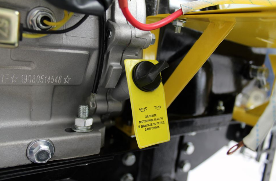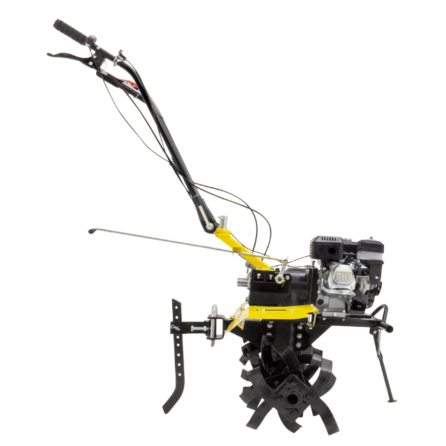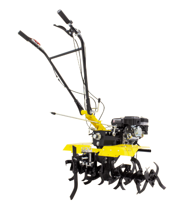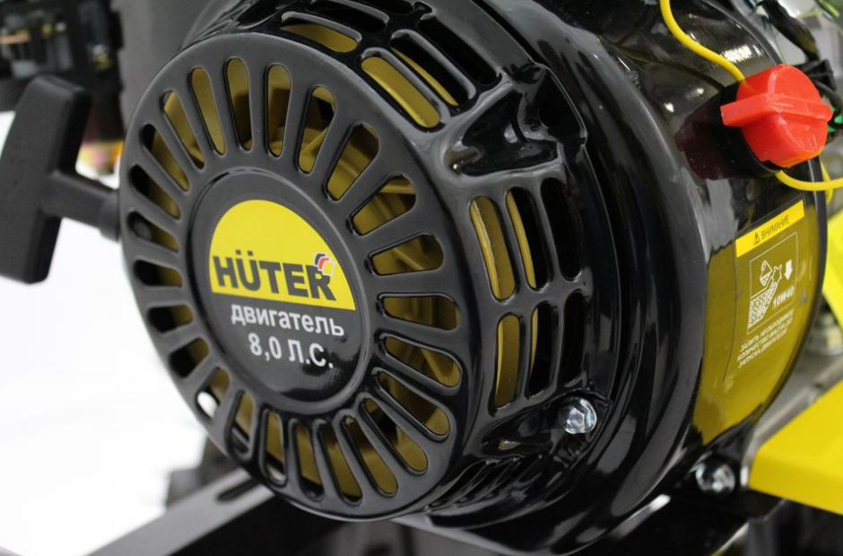 - Четырехтактный одноцилиндровый бензиновый двигатель мощностью в 8 л.с. способен успешно вспахивать тяжелые и твердые почвы.