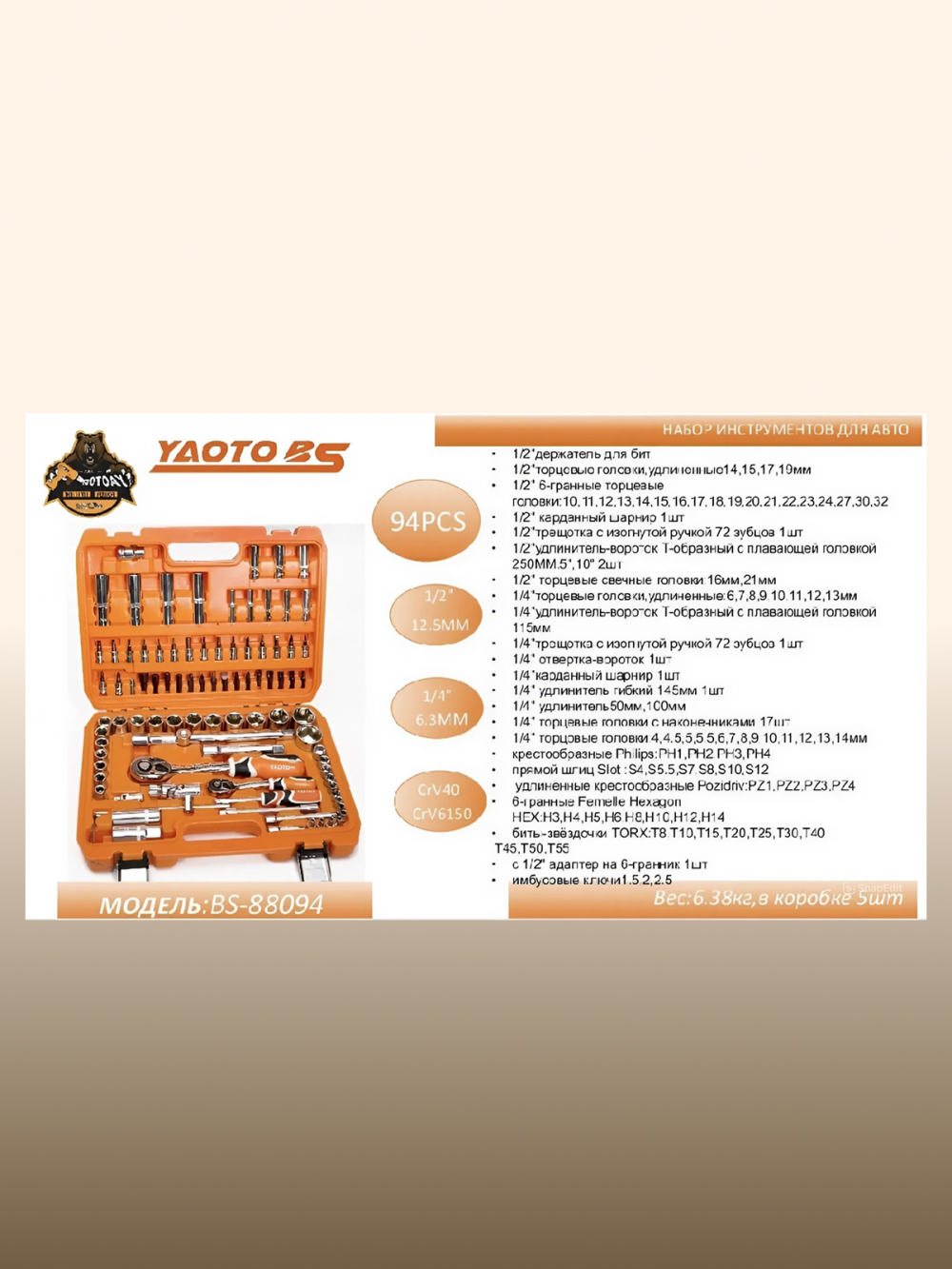 Набор автомобильных инструментов YAOTO 94 предмета