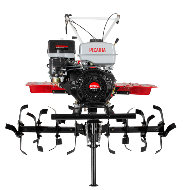 Сельскохозяйственная машина МБ-11000Р-12 Ресанта предназначена для проведения разных видов обработки земель на больших площадях. Четырёхтактный бензиновый двигатель обеспечивает высокую производительность, позволяющую выполнять большой объём культивационных работ; его мощность - 11 л с.