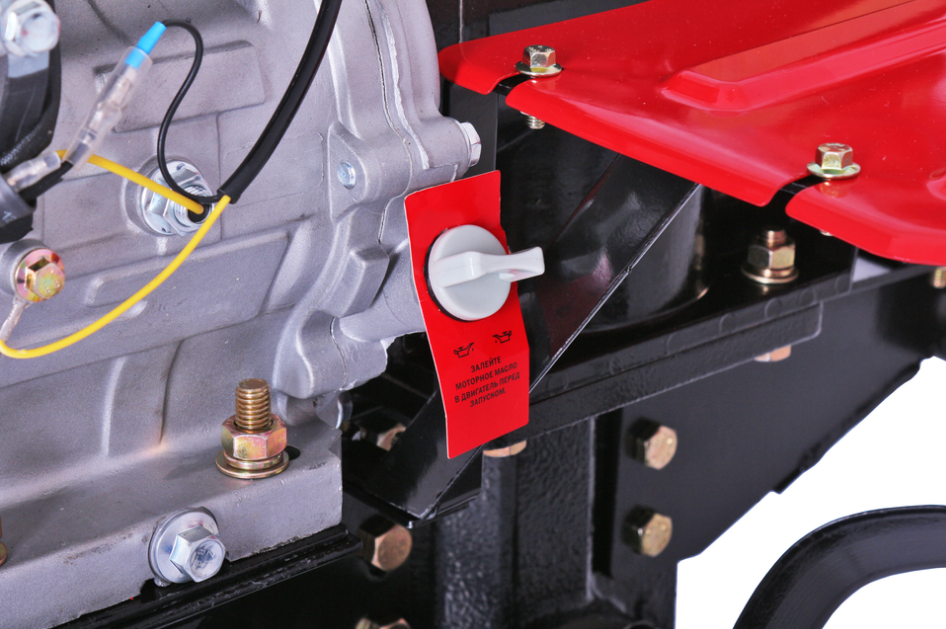 Передачу вращающего момента от силовой установки мотоблока к активному навесному оборудованию обеспечивает ВОМ 18 мм. Мотоблок имеет шестерёнчатый редуктор в масляной ванне в чугунном корпусе, что позволяет обрабатывать тяжелые почвы. Двигатель оснащён защитной системой блокировки запуска при отсутствии или недостатке уровня масла.