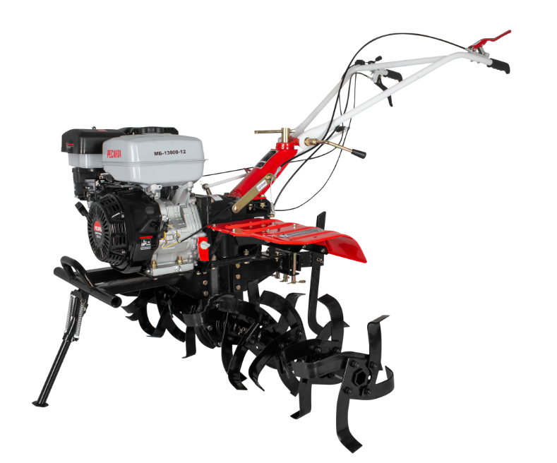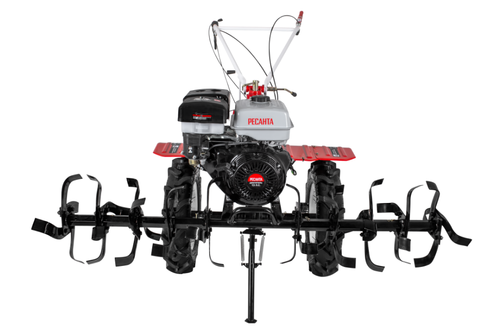 Сельскохозяйственная машина данной модели имеет привод для подключения активного навесного оборудования ВОМ 18 мм. Длительную и бесперебойную работу двигателя обеспечивает хромированная поршневая группа. Мотор МБ-13000Р Ресанты оснащен автоматическим регулятором частоты вращения, что значительно упрощает работу оператора.