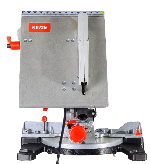 Комбинированное устройство, которое можно использовать как настольную или торцовочную пилу, работает на базе электродвигателя с прямым приводом и частотой вращения 5000 об./мин. Естественное охлаждение мотора осуществляется через предусмотренные в корпусе отверстия. Инструмент можно применять для распиливания заготовок из дерева, композитных материалов на древесной основе, пластика. В случае установки соответствующей оснастки он легко справится с тонким металлом. Блокировать вал для безопасного откручивания зажимной гайки с целью замены диска можно с помощью кнопки, расположенной на редукторе. Защитный кожух частично прикрывает пильный диск в нерабочих зонах, обеспечивая безопасность оператора. Для поддержания чистоты рекомендуется пользоваться пылесборником, в который будут поступать отходы производства, или подключать устройство к строительному пылесосу.